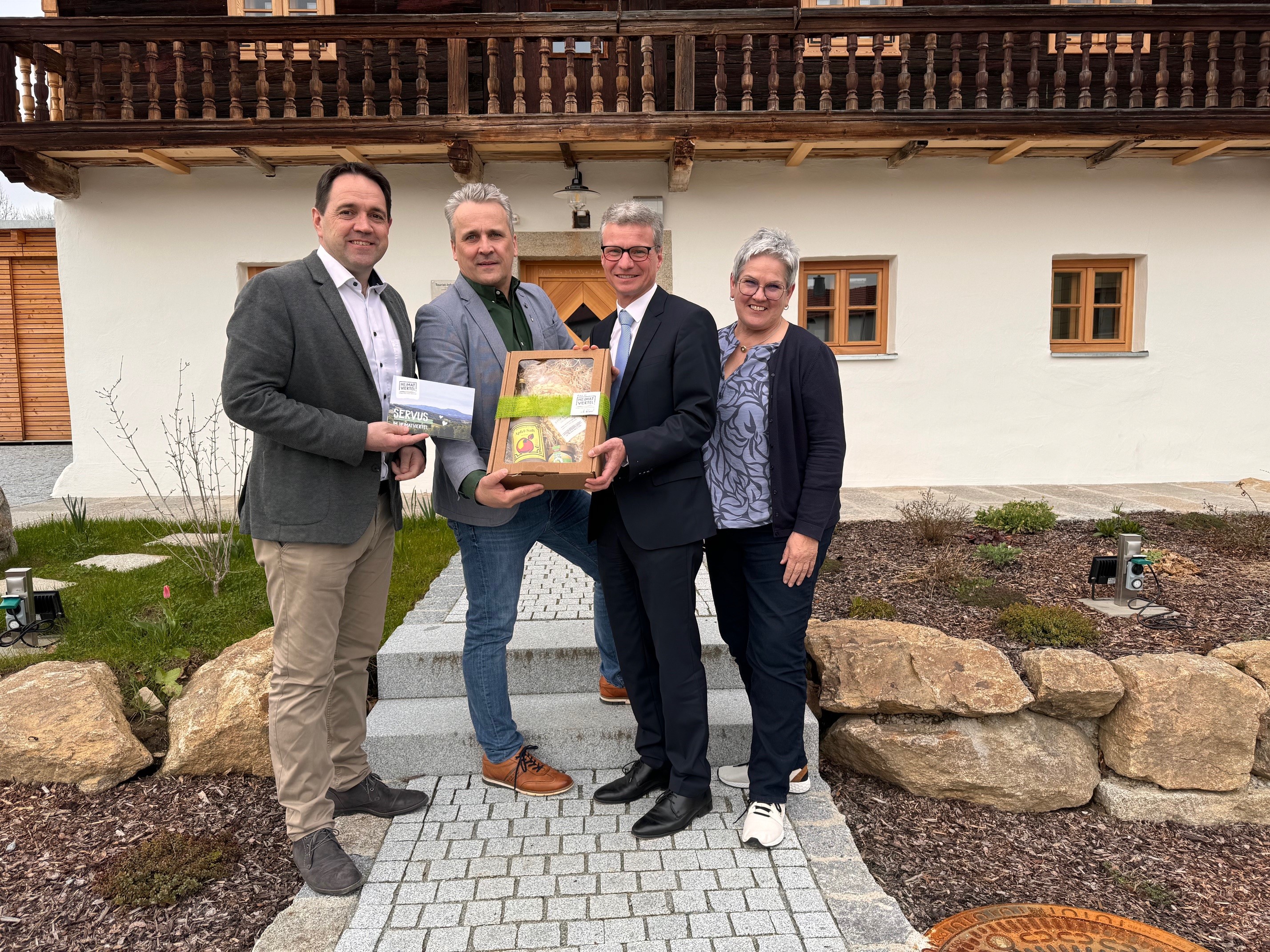 Zum Dank für den wertvollen landkreisübergreifenden Austausch, wurde den Besuchern ein Heimatviertel-Packerl überreicht.